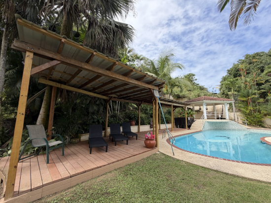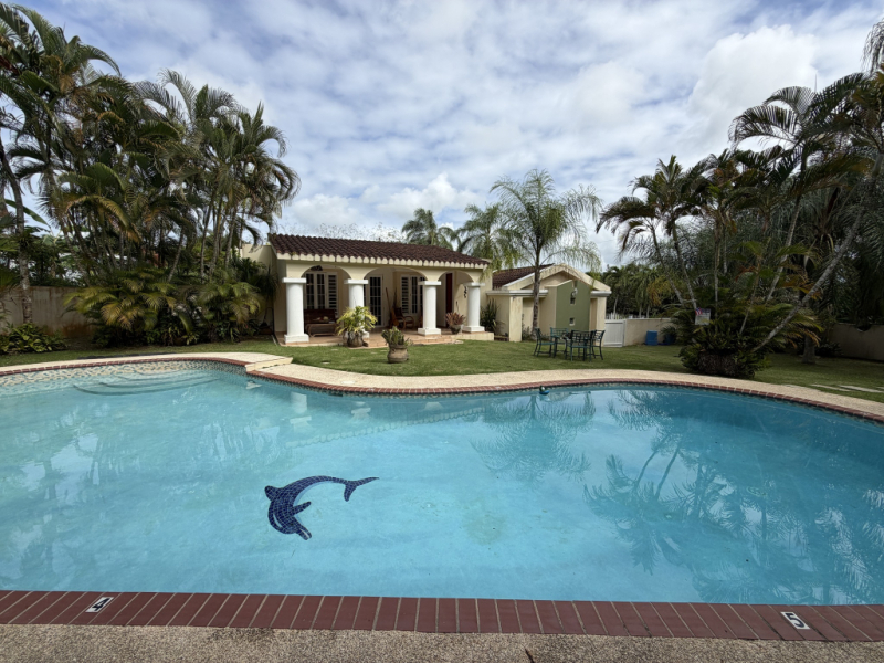 Hermosa y espaciosa residencia localizada en Urbanización Paraíso de Santa Bárbara en Gurabo, ideal para quienes buscan comodidad, privacidad y amplios espacios tanto interiores como exteriores.La propiedad cuenta con aproximadamente 2,800 pies cuadrados de construcción y está ubicada en un solar de 520 m², ofreciendo una excelente distribución y áreas perfectas para el disfrute familiar y el entretenimiento. Además, cuenta con una localización excelente con fácil acceso a la PR-30, facilitando la conexión con las principales vías y áreas cercanas. Propiedad totalmente amueblada en su interior y cercada en su exterior con portón de seguridad en su entrada. El área exterior es uno de los grandes atractivos de la propiedad, con espacios diseñados para disfrutar del clima tropical de Puerto Rico, incluyendo piscina, terraza y un acogedor gazebo ideal para reuniones y actividades sociales. 3 habitaciones (todas con aire acondicionado) 5 baños (incluyendo baño en el área de piscina) Sala amplia |