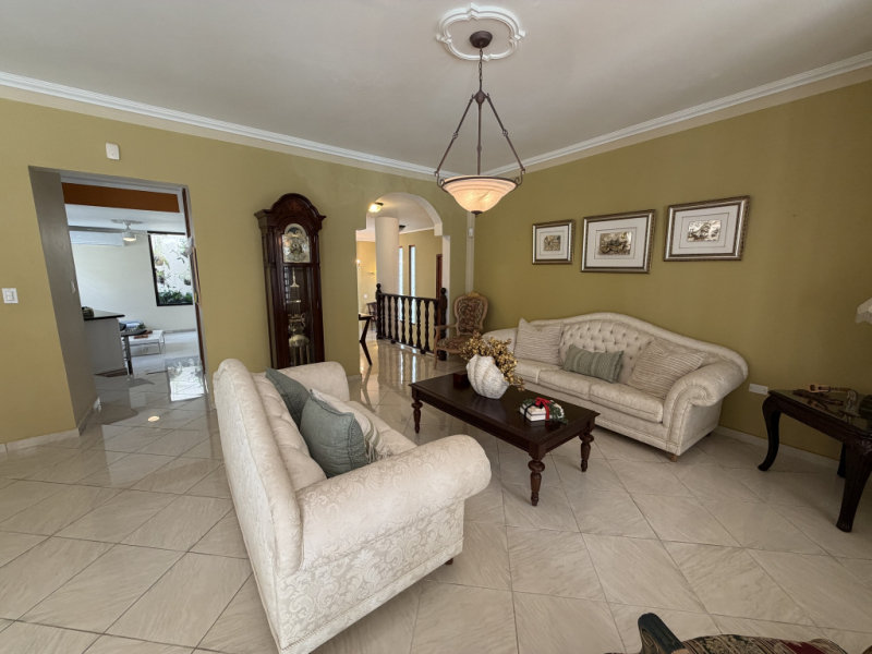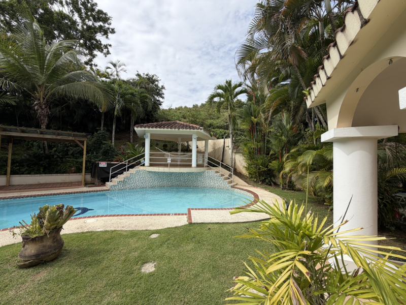 Hermosa y espaciosa residencia localizada en Urbanización Paraíso de Santa Bárbara en Gurabo, ideal para quienes buscan comodidad, privacidad y amplios espacios tanto interiores como exteriores.La propiedad cuenta con aproximadamente 2,800 pies cuadrados de construcción y está ubicada en un solar de 520 m², ofreciendo una excelente distribución y áreas perfectas para el disfrute familiar y el entretenimiento. Además, cuenta con una localización excelente con fácil acceso a la PR-30, facilitando la conexión con las principales vías y áreas cercanas. Propiedad totalmente amueblada en su interior y cercada en su exterior con portón de seguridad en su entrada. El área exterior es uno de los grandes atractivos de la propiedad, con espacios diseñados para disfrutar del clima tropical de Puerto Rico, incluyendo piscina, terraza y un acogedor gazebo ideal para reuniones y actividades sociales. 3 habitaciones (todas con aire acondicionado) 5 baños (incluyendo baño en el área de piscina) Sala amplia |